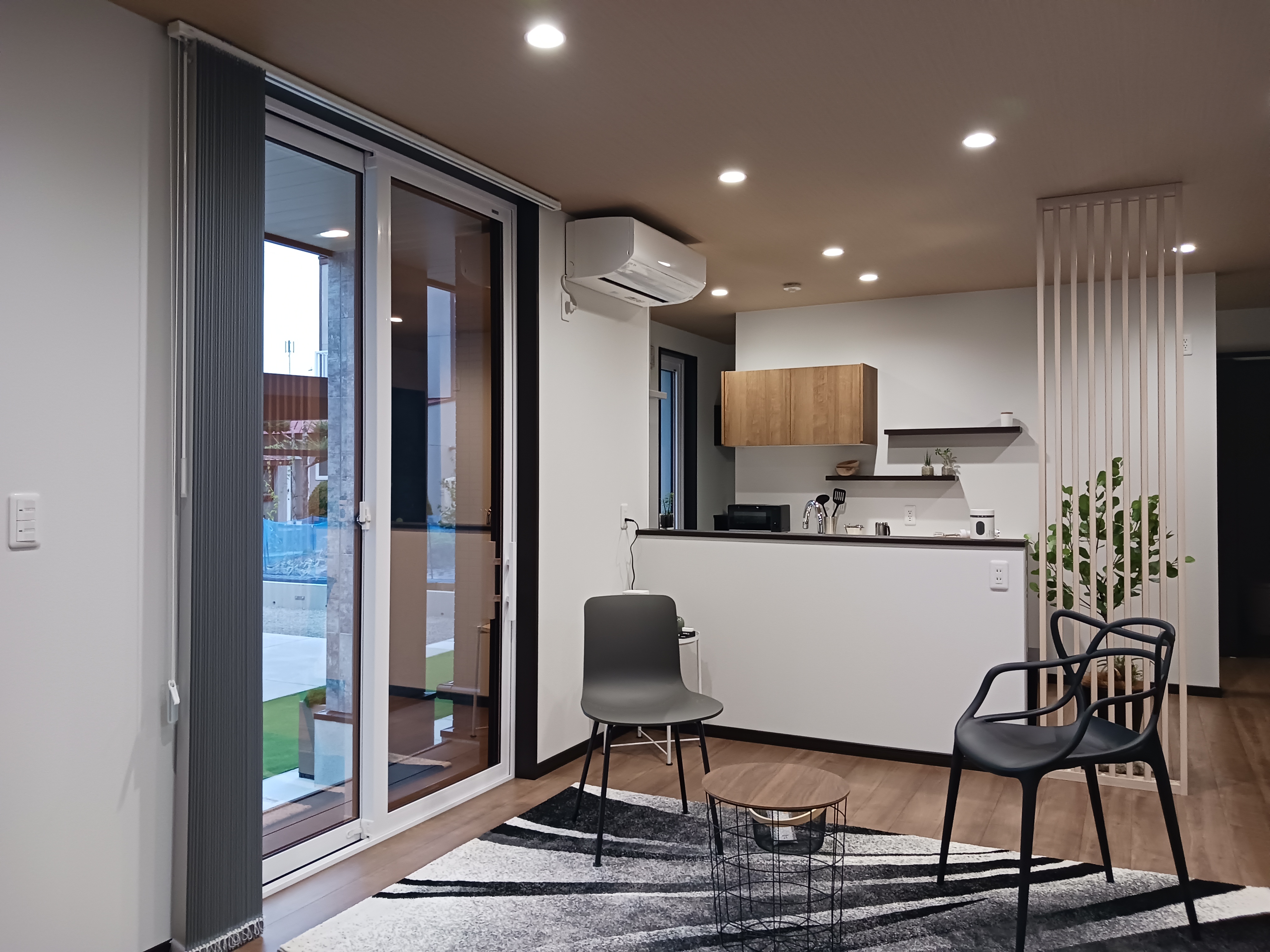 建具が空間を引き締め、スタイリッシュで落ち着きのある空間に。