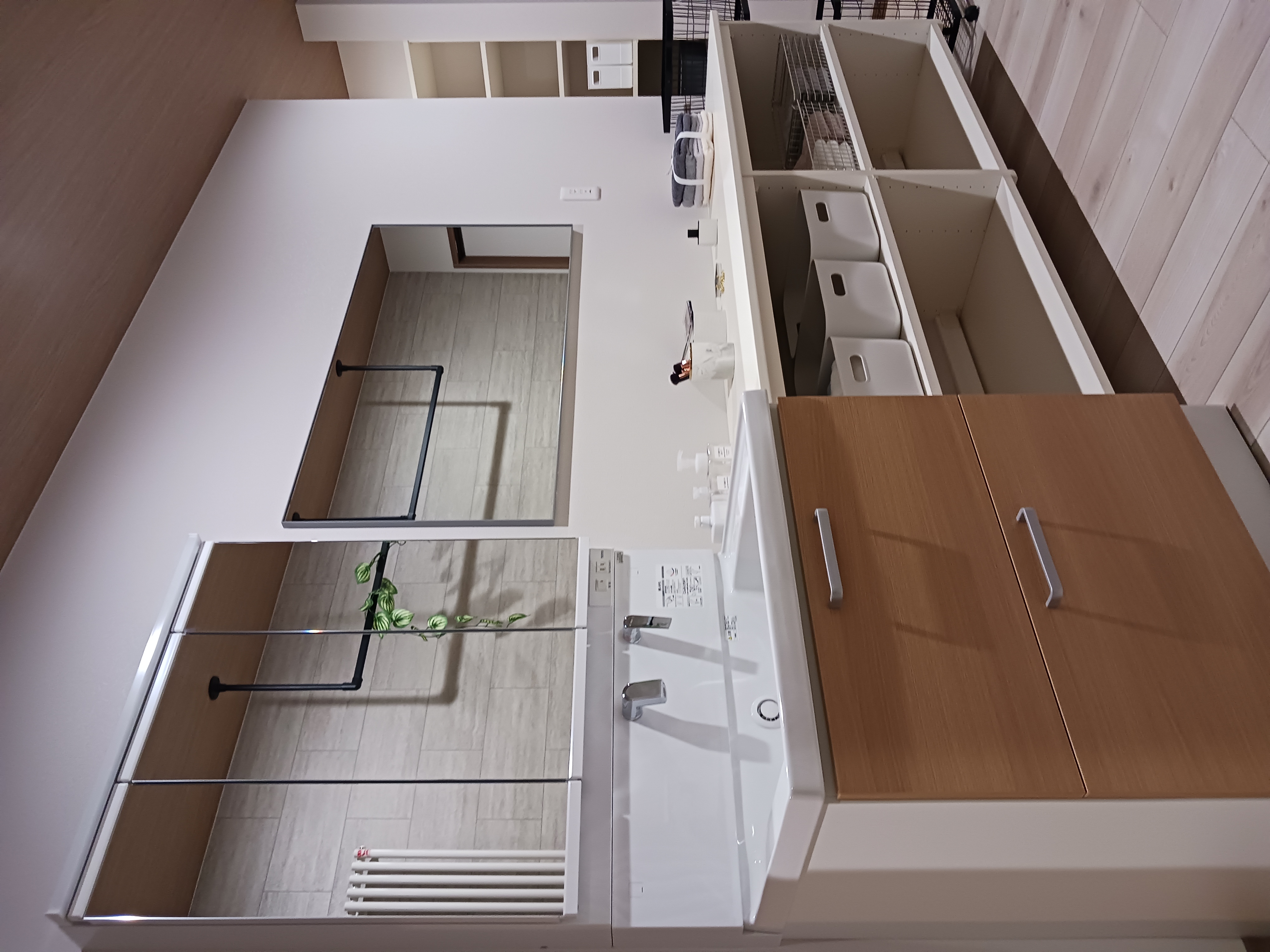 脱衣室で洗う・干す・畳むの一連の動作ができ、そのまま隣接しているウォークインクローゼットとファミリークローゼットに収納できます。