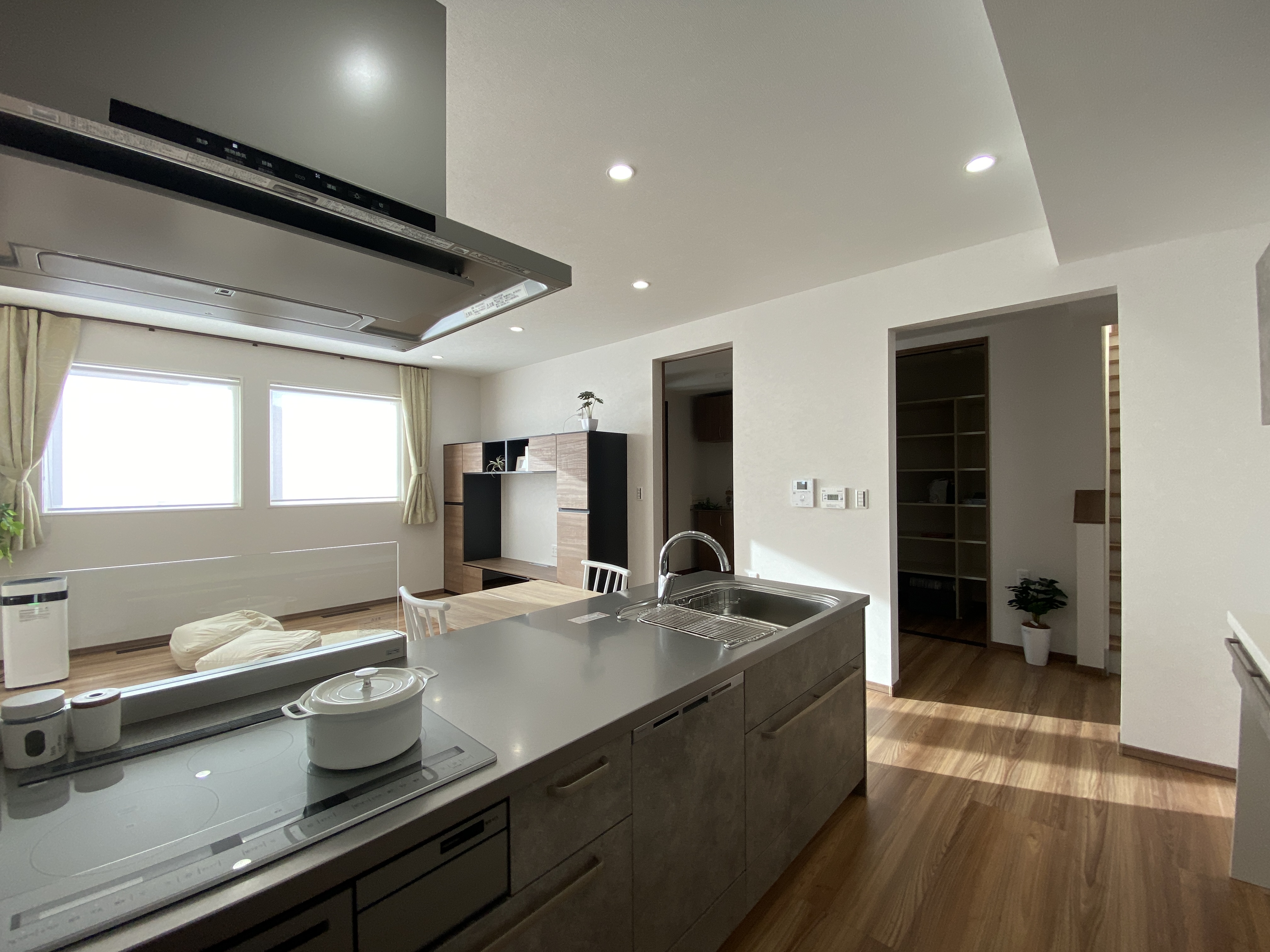 4人家族が快適に暮らせる広々リビングと回遊導線の平屋新築住宅 エアコン1台で全館空調
