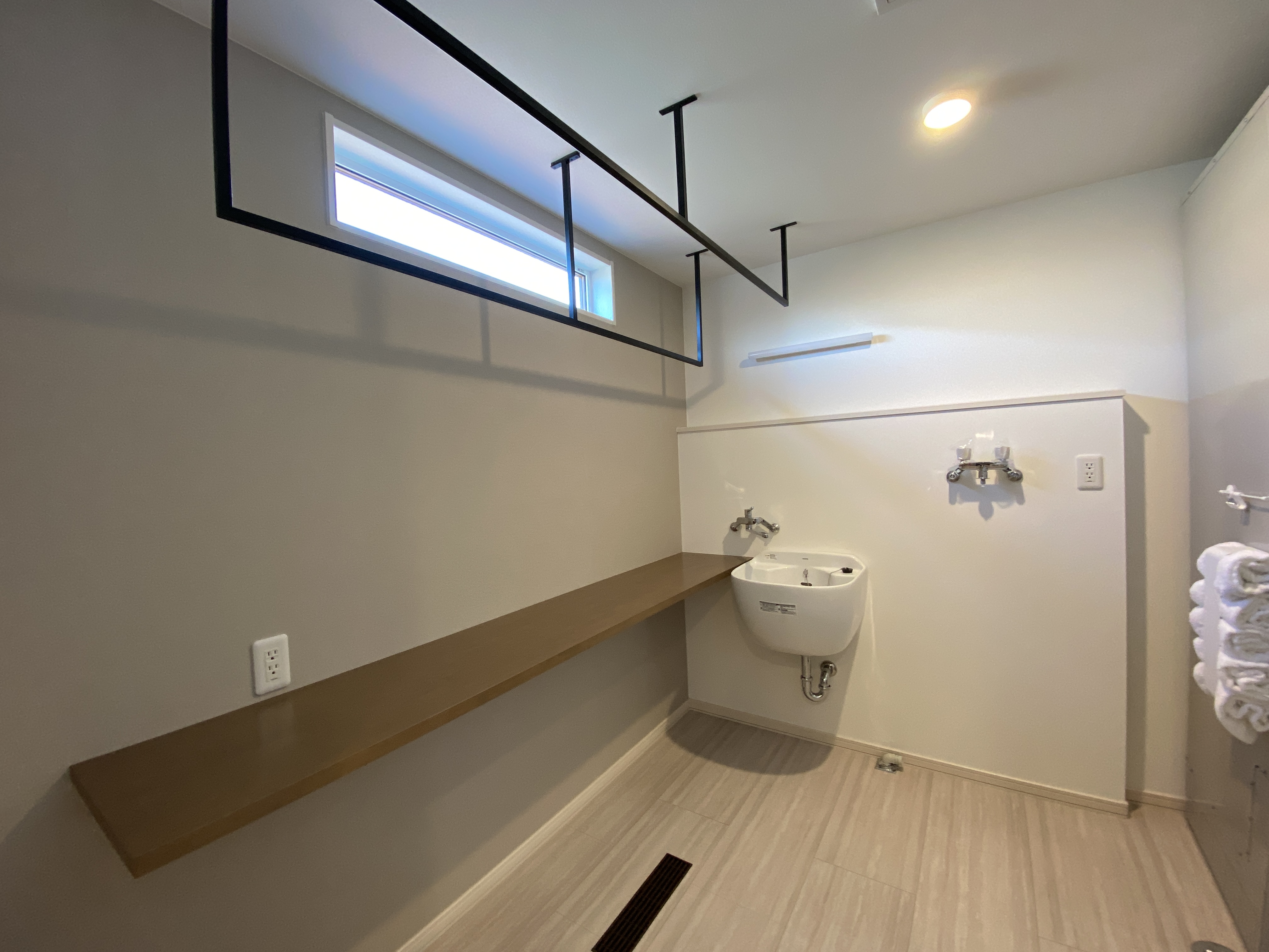 脱衣室は洗う・干す・アイロンがけ・畳む一連の動作ができる計画となっています。