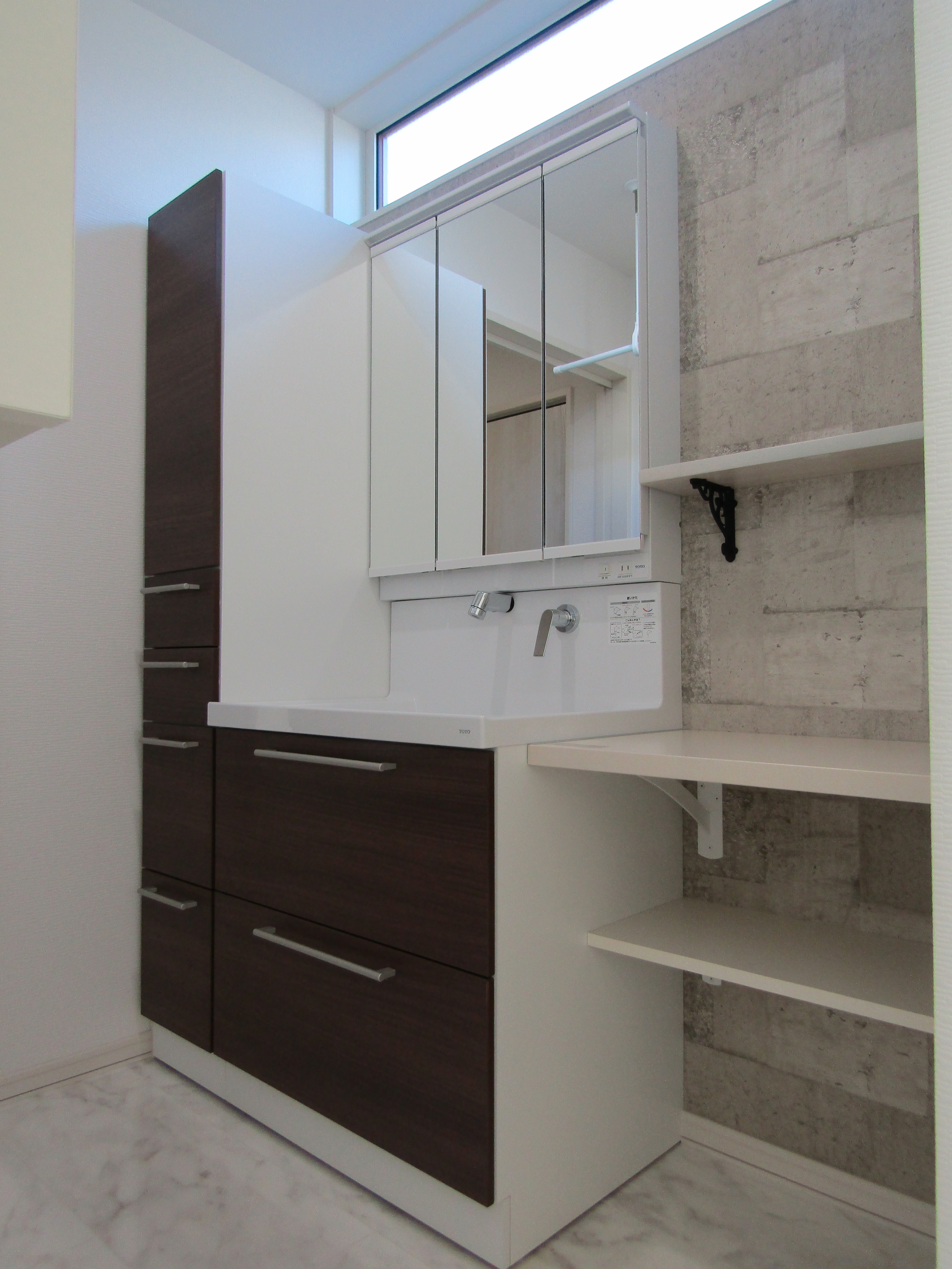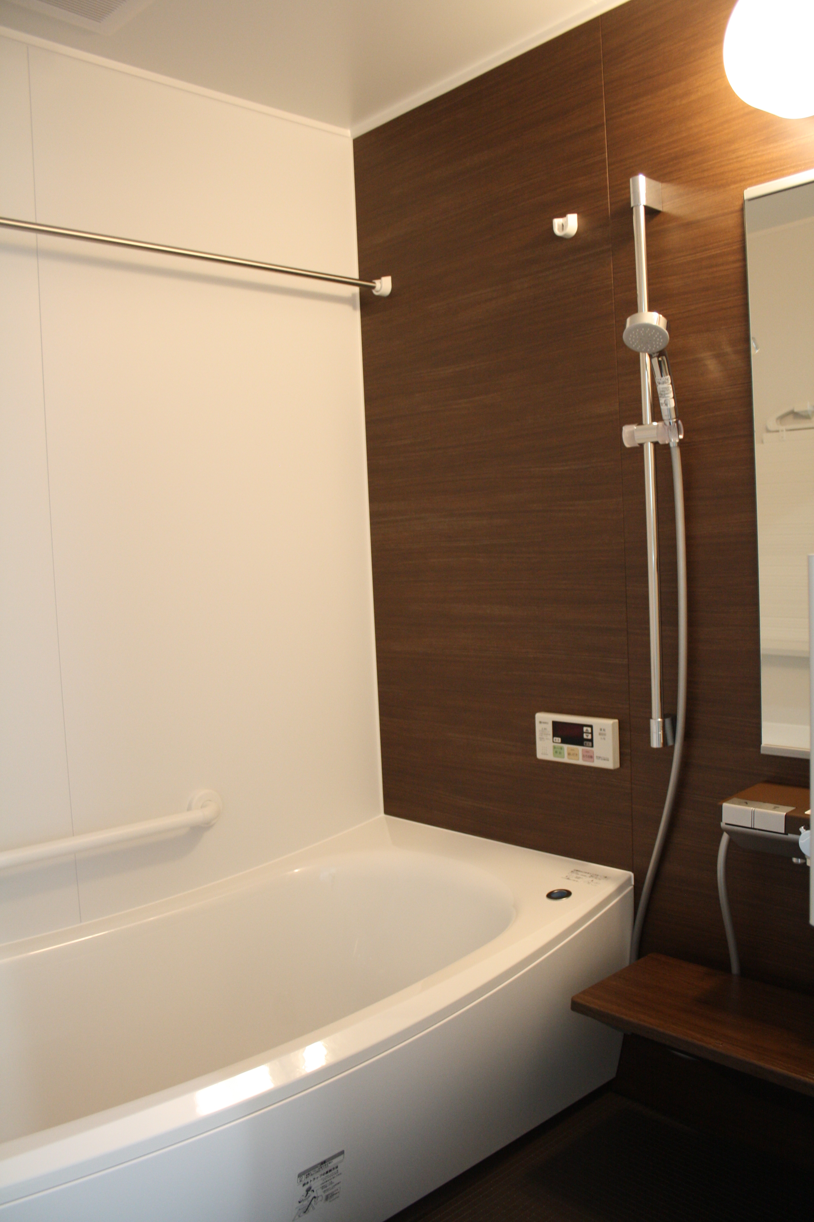 ユニットバスや洗面台のブラウンが引き立ち、アクセントになっています。