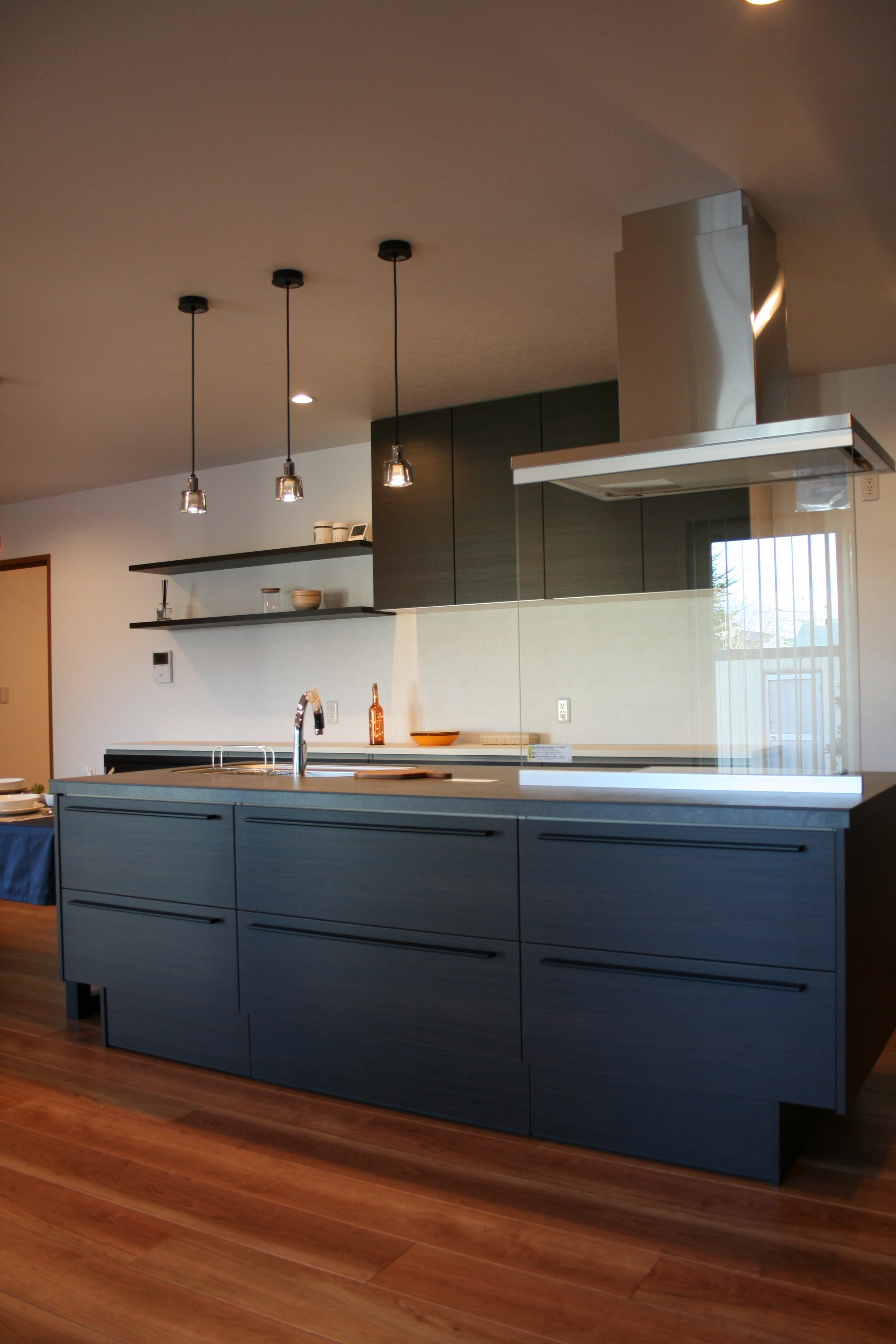 黒を基調にした高性能アイランドキッチンがスタイリッシュで落ち着いた雰囲気のLKD。
