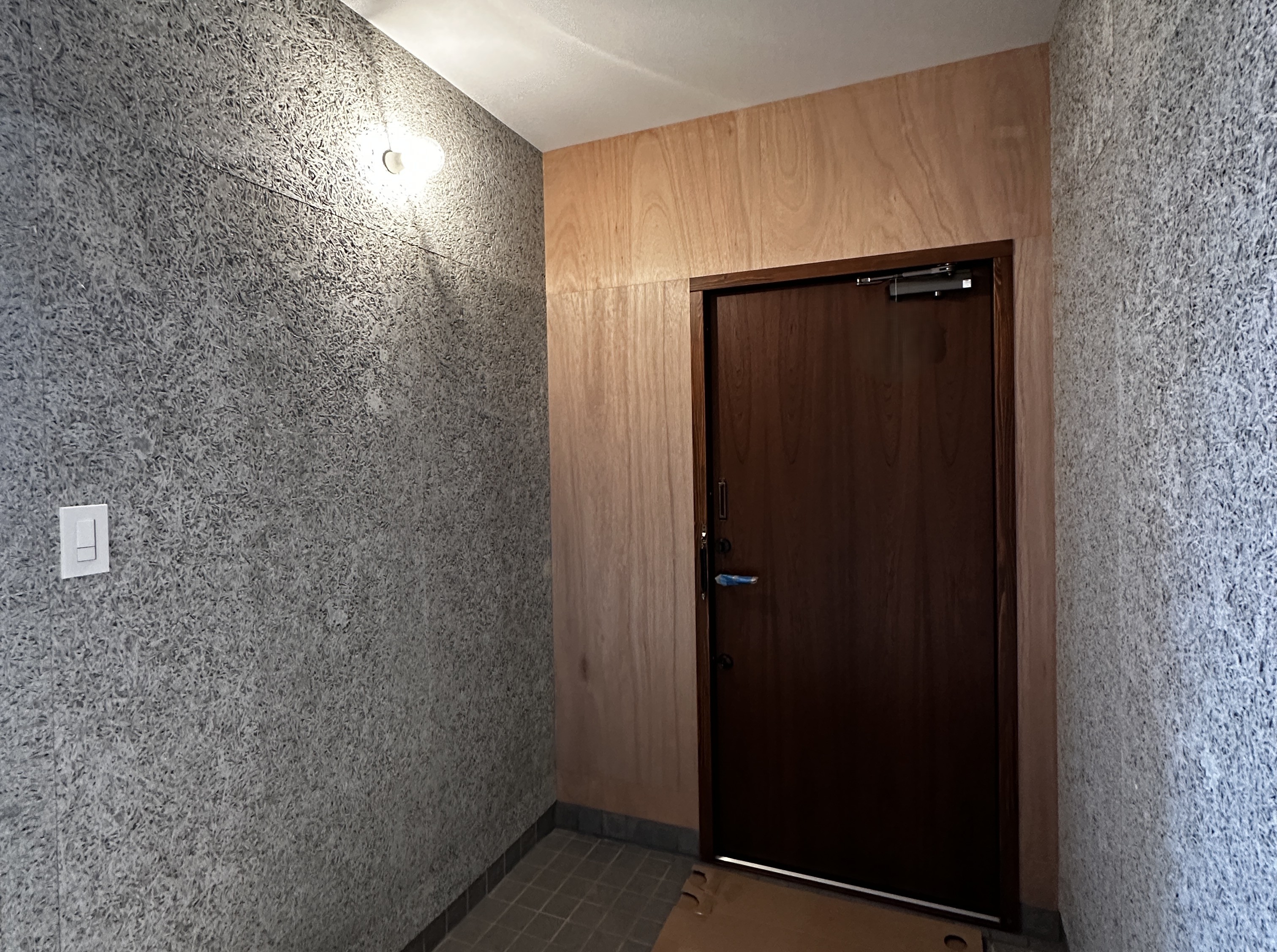 設計は「空間工作所・神谷氏」が担当。合板や木毛セメント板などの素材感を楽しめる仕上げを取り入れ、飾りすぎないシンプルなデザインにまとめました。照明計画にも工夫を凝らし、温かみのある光が暮らしを包み込みます。